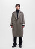 Classic tailoring redefined with subtle texture. This double-breasted coat is in an elegant herringbone weave, combining timeless sophistication with modern versatility. The neutral brown-grey tones make it a refined companion for both casual and formal styling.